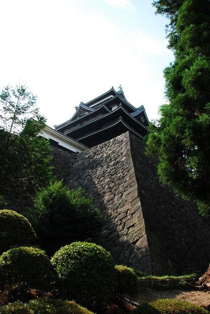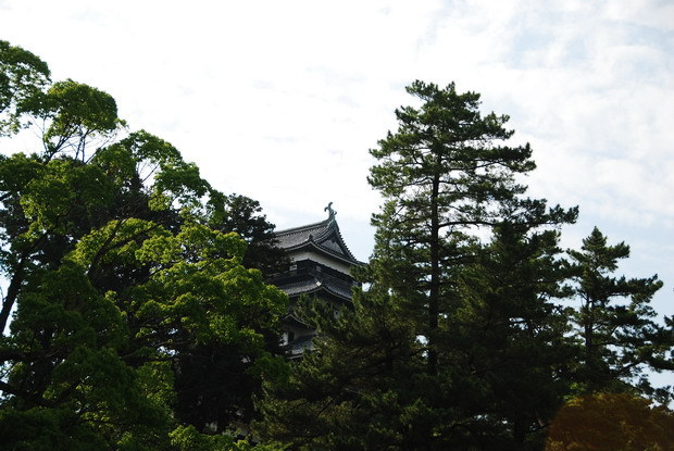 於是往大門前進,從城牆下仰望松江城的天守閣