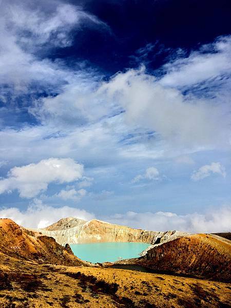 湯釜是一個火山口湖,顏色真的很特別,還蠻喜歡這種藍色,有些角度,也與是陽光的關係,會像是知更鳥蛋的顏色,或是像是婚戒的蒂芙尼的藍色。