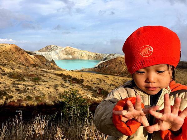 因此建議造訪湯釜的時間盡量是非雪季比較方便,因為從停車場上去只要15分鐘就可以了,老弱婦孺都可以上去,就連我抱著小孩走上去也是OK的,當爸爸之後,身體果然變強壯了。