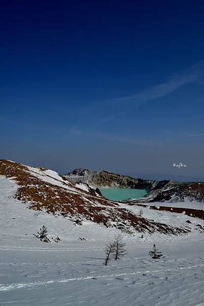 [照片04] 這是冬天的湯釜,白雪、藍天、湛藍的湖水