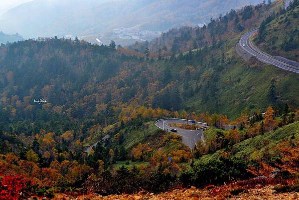 [照片說明]往湯釜的路上會經過白根山八合目,有很好的展望,可以看到萬座溫泉區,還有蜿蜒的山路