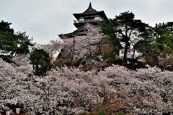 天氣陰鬱,沒有陽光的櫻花,就不特別美路,不錯丸岡城還蠻漂亮,開花約9成,未來的一個禮拜應該都很美。剛好有祭典,所以附近的人都集中到這邊。