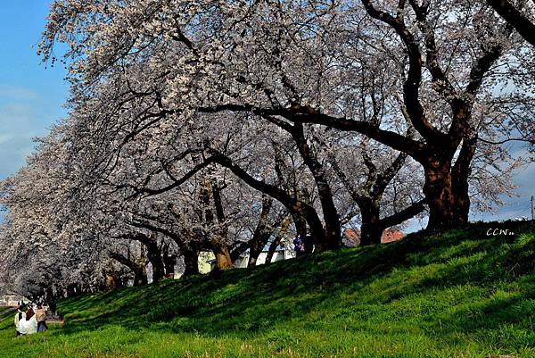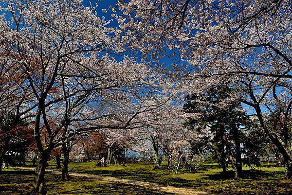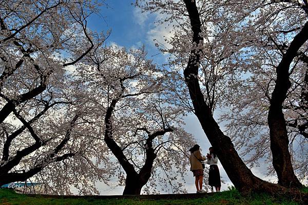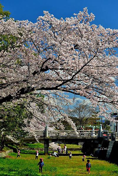 前往福井的路上開始下雨,抵達福井市,覺得有熱鬧的感覺,這兩天去的地方都不是大都市,經過九十九橋(長壽橋),河畔的櫻花開的好茂盛(只有一側),停車位也找了很久,河畔附近不能停車,正愁停車的煩惱時,前面一台車似乎也是要找停車位,於是就跟著走,還真的走到河堤邊上的臨時駐車場。本來的陰雨天,太陽又突然露出來,有些天空烏雲散去,於是選擇一塊平坦的河堤野餐,此時是滿開的時候,葉子尚未出來,風吹過來,花瓣掉落,好舒服的感覺,但有點冷就是了。取車的時候,開始下著雨,慶幸已經收了,外面的攤販有幾處的棚子應大風被吹起(小女還有驚呼一下)。