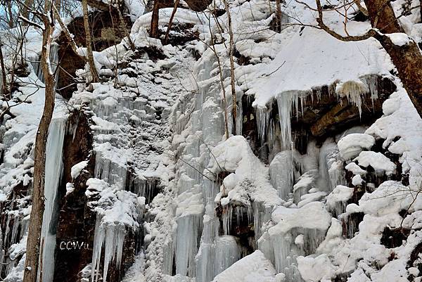 2019 旅的足跡,冬天來到日本青森的奧入瀨溪流,溪流旁的冰壁,雪白冰涼的山壁!
