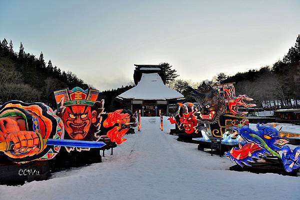 2019 的足跡,冬天造訪很寒冷的青森,這裡是星野青森屋的庭園,青森屋會有小馬站在門口迎接,然後會有溫熱的蘋果汁迎客。偌大的庭園上有睡魔的展示品,記得在青森市只有在展管才會看到,這裡夜間會點燈。