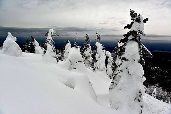 2019 的足跡-冬天的日本-打當的獵人舞台,就是在秋田內陸的森吉山區,這裡也是有名的樹冰,冰雪覆蓋在松樹上,就好像人形,當雪融化的時候,五官就出來了,就像是萬聖節時候的怪物。