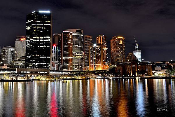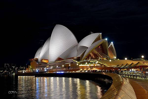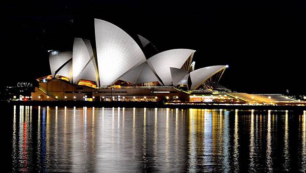 2019 的足跡,來到春天的澳洲,雪梨歌劇院的左側及其於倒映在環形碼頭海面的燈光。