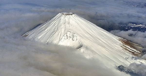 雖然窗外有厚厚的雲層,但仍可看到遠方富士山的山頭,真是很開心,每次搭飛機總是想要看到富士山,如此也就不用特別在跑一次富士山。說的也奇怪,即便去過富士山,可是每次到東京,都會想要去他的山腳下繞繞。先印入眼簾的是河口湖,27及28日剛好水氣跟溫度都夠,所以這一帶有下雪,所以可以看到河口湖周圍是白色的,接下來就進入到富士山的領域,山頭被白雪所覆蓋,真的好清晰好美麗。