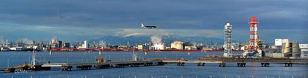 接下來就進入到伊勢灣,我一直很努力看能不能看得到名古屋港,不過距離真的太遠,可是還是可以看到中部國際空港,也是獨立於陸地的海上結構物。