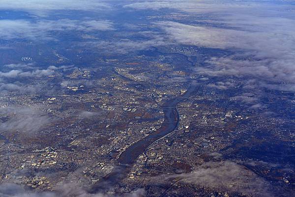 接著穿過一大片的陸地,下面應該是緊鄰相模川的海老名市,我高中的好朋友嫁到日本,曾經在海老名市短暫居住過三年,曾經有想要去找她,不過確實離東京有好一大段的距離。