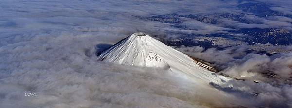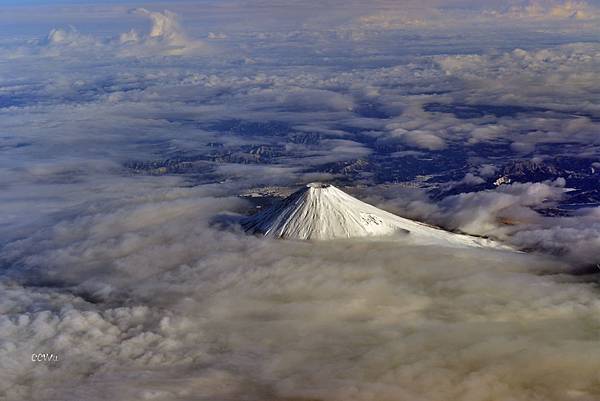 最令人興奮的就是可以在飛機的窗外看到富士山,冬天的富士山最美了,有白靄靄的雪冠在山頭上。