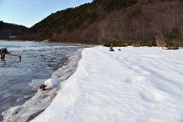 雖然這幾天沒有下雪,但湖畔竟然有結冰,在台灣都沒有看過這樣的景色,覺得好特別。