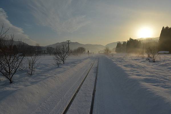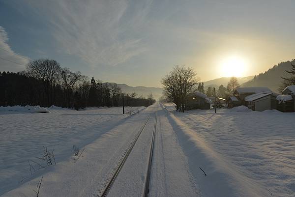16. 鐵道逐漸遠離夕陽,真是筆直的鐵道阿!