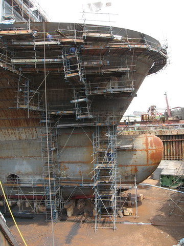 由於壓載海水,很容易腐蝕而使得船殼板因為應力而脫落