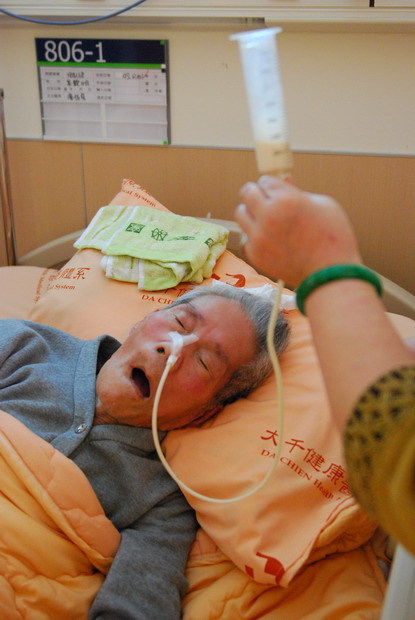 胸前埋了一根管子,是十年前在長庚醫院動的手術,管子是從腦接到胃部