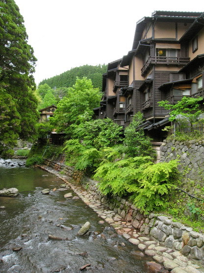 接著沿著小巷弄往下走,就可以看見林立的溫泉旅館