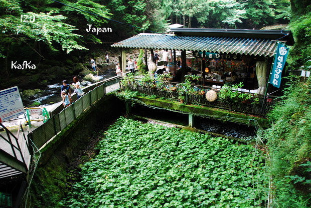 中伊豆-淨蓮之滝前的滝見茶屋,前面種滿了山葵,很多旅遊書都有放這一張照片喔!!