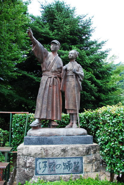淨蓮之滝巴士站前,也有一個川端康成與踊子的雕像,