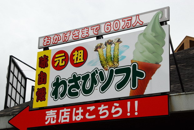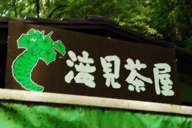 瀑布前的滝見茶屋,帶著山葵的招牌,話說山葵葉可是德川家的家徽