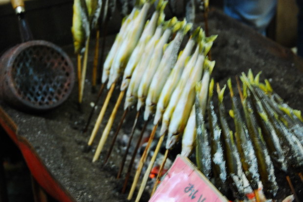 旁邊有賣剛釣起來的溪魚,周圍種滿了山葵,