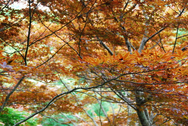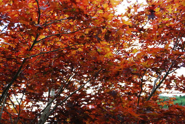 可是總有一些紅色的楓葉穿插,就不會那麼的單一顏色的呈現。