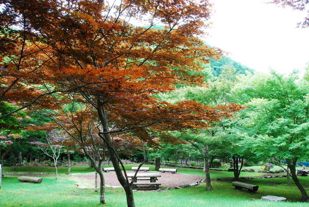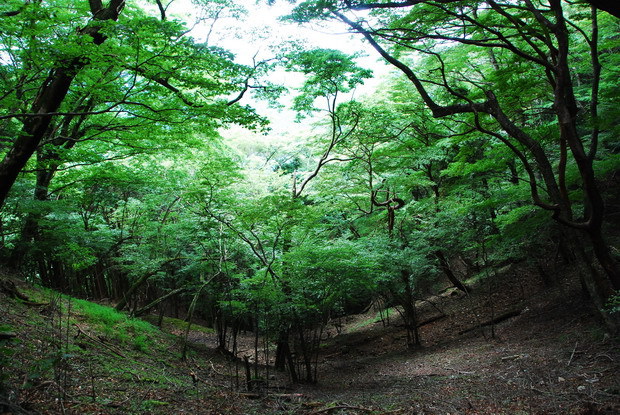 有著原生樹林谷周圍,剛好時間是夏天,所以是綠油油的一片。