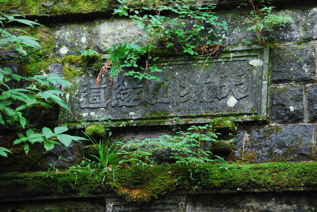 天城山隧道的名字,還刻畫在石頭上,但已經逐漸植批給覆蓋上去