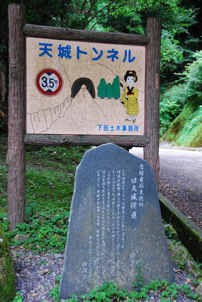 旧天城隧道的碑,告示牌還畫著可愛的藝妓