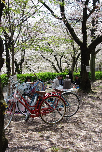 應該是說腳踏車因為主人野餐,所以也可以乖乖待著。